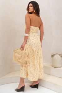 O modelo tomara que caia valoriza o colo com elegância, enquanto o Elastex posterior garante segurança e melhor ajuste ao corpo. A saia apresenta detalhes sutis que remetem a pequenas pregas, criando movimento, fluidez e aquele toque leve perfeito para dias ensolarados.